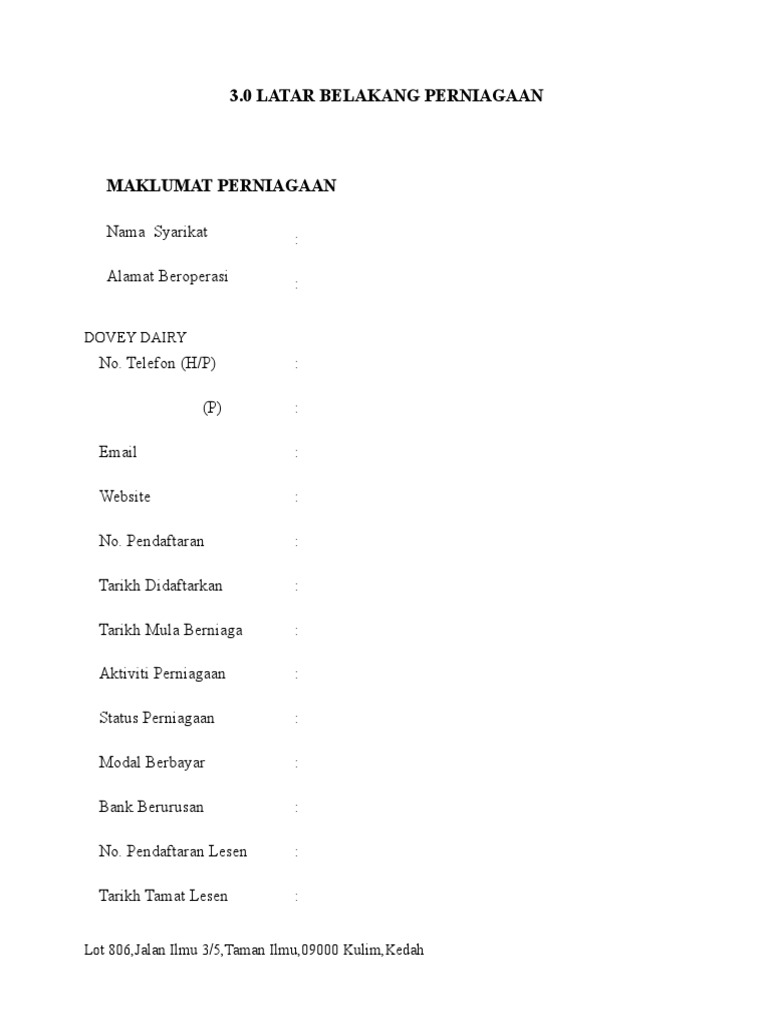 contoh latar belakang perniagaan