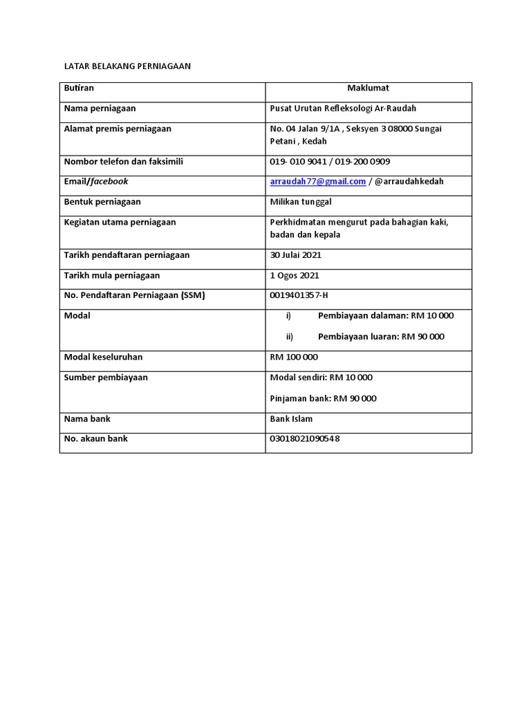 Doc Contoh Kertas Kerja Rancangan Perniagaan Shahrin Hamid Academia Edu